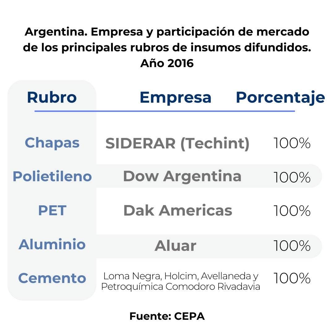 En insumos difundidos directamente hay ausencia de competencia en sectores como aluminio, plástico, acero y papel.
