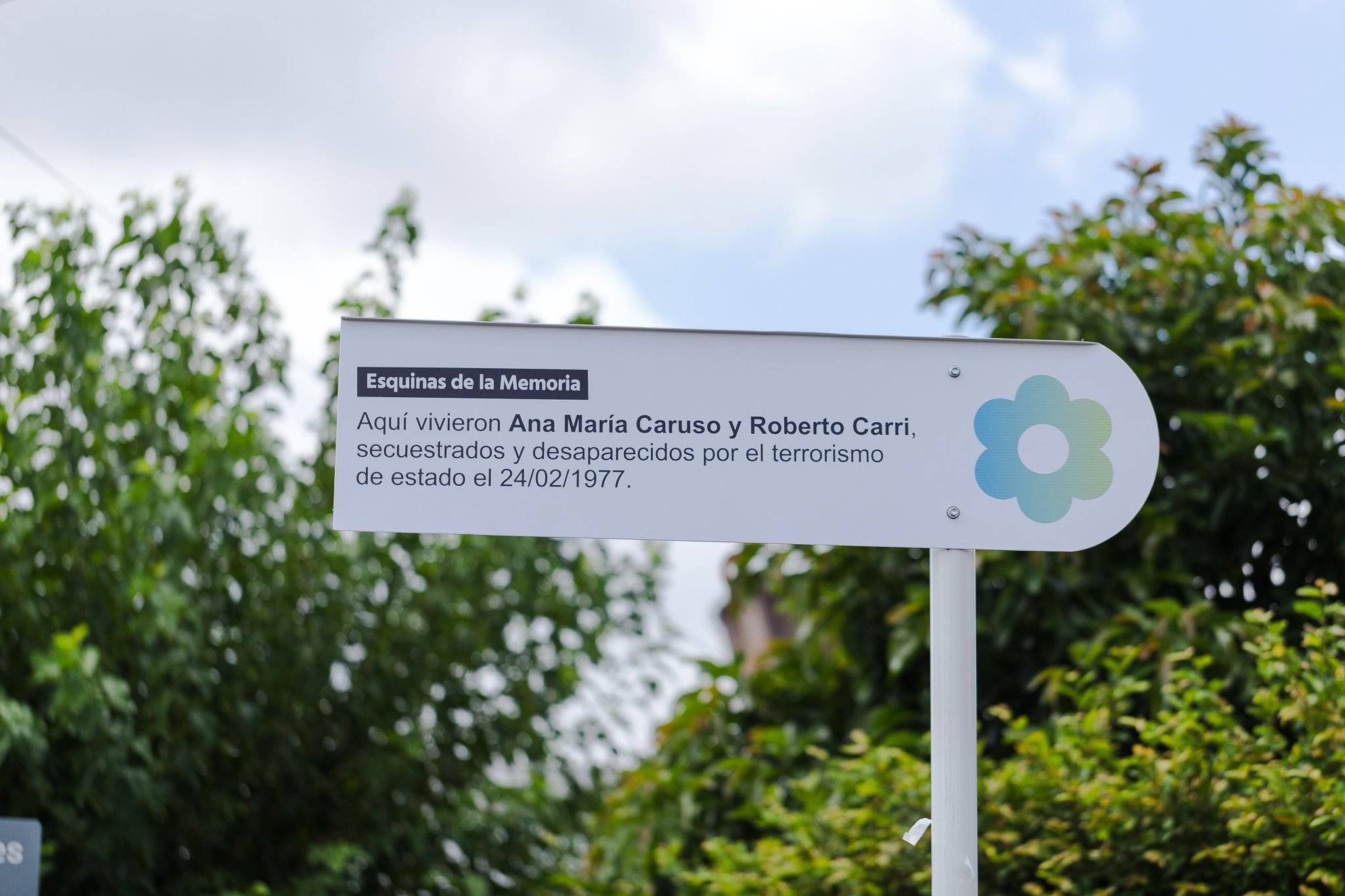 Esta mañana descubrimos la placa de la Esquina de la Memoria dedicada al recuerdo de Ana María Caruso y Roberto Carri, quienes fueron víctimas de la última dictadura militar en 1977.