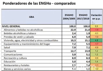 Por otro lado, para el conjunto de componentes, debe considerarse que el IPC actual sigue basado en una canasta de consumo de 2004/05, actualizada por última vez en 2016. Desde entonces, la estructura de gastos de los hogares cambió de manera significativa: hoy pesan relativamente menos los alimentos y mucho más los servicios como luz, gas, agua, transporte y comunicaciones (ENGHo 2017/18). Este desfasaje hizo que, en el último período, los aumentos de tarifas quedaran subrepresentados en la inflación oficial —en los hechos, el IPC actual “aplanó” los tarifazos—.