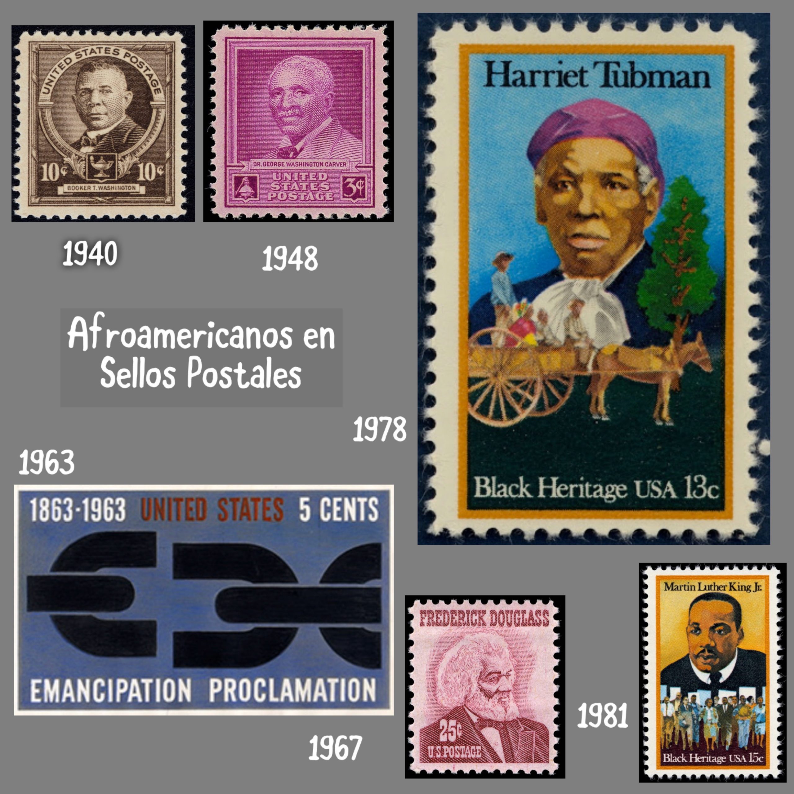 Fue recién en 1940 cuando, durante la Presidencia de Roosevelt, el correo representó al primer afroamericano en sellos postales. En 1978, durante la presidencia de Carter, se pondrá en marcha una serie que aún se emite anualmente en la que realiza un homenaje al legado afroamericano (Black Heritage). Sin poder explayarnos acá, no resulta llamativo descubrir que la mayoría de las emisiones postales en los que se representaron mujeres y hombres afroamericanos o en los que se conmemoraron hechos históricos de la vida de los afroamericanos en los Estados Unidos, hayan sido decididas durante las presidencias demócratas.
