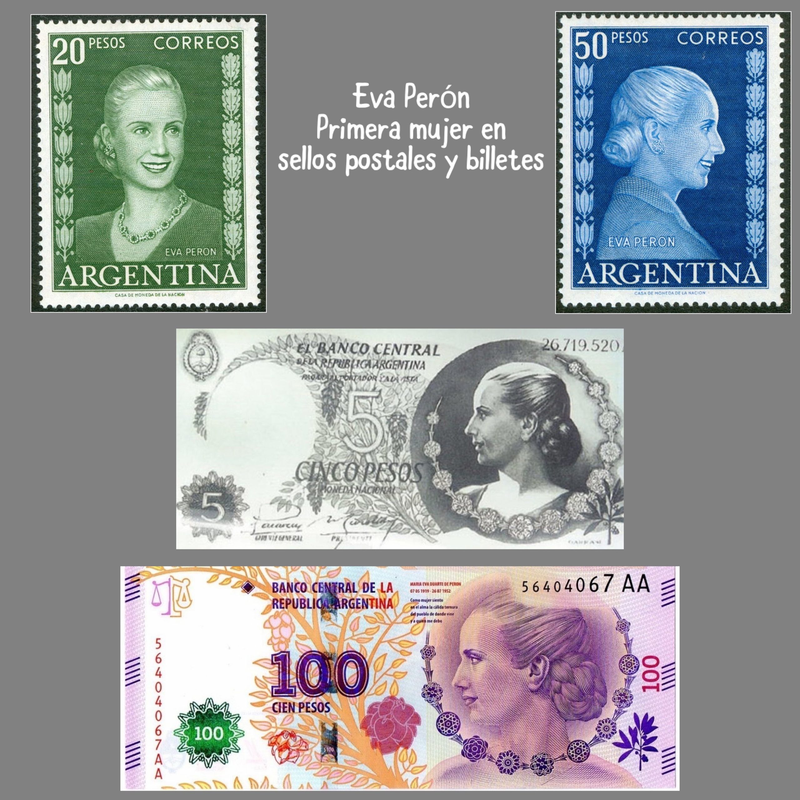 Hasta la década del '50 en nuestro país los próceres eran todos hombres de Estado y/o militares del siglo XIX: Rivadavia, San Martín, Belgrano, Sarmiento, Mitre, Roca, Urquiza, etc. Es decir que lo que convertía a un héroe en héroe eran su valentía o su sabiduría. Y estos valores solo eran encarnados por hombres. Y así sus rostros ilustrarán manuales, billetes, estampillas, medallas y hasta publicidades. Además, la virilidad se exacerbaba si la representación era ecuestre.