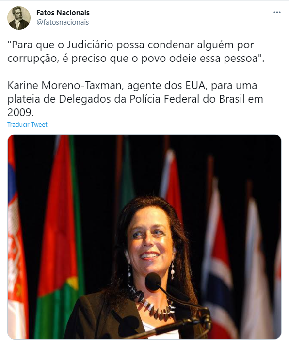 La Embajada de los Estados Unidos procura aumentar su influencia. En el deseo de estructurar una red alineada con sus directrices en el medio jurídico brasileño, crea el cargo de asesor legal o asesor legal residente. La elección recayó en Karine Moreno-Taxman, fiscal especializada en la lucha contra el blanqueo de capitales y el terrorismo.
