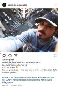 Las intimidaciones adquieren otro sentido cuando se advierte la proximidad de sus autores a la Vicepresidenta, con esta imagen que Gastón Guerra subió a su Instagram.