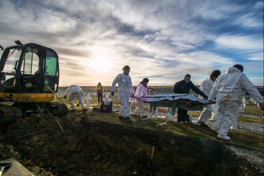 Aplicar el verbo “enterrar” es y no es una metáfora. En rigor, fueron escasísimos los muertos sepultados por las tropas argentinas. La mayoría de los cadáveres quedaron esparcidos por los campos. Tras la rendición, el comando inglés dispuso que el coronel Geoffrey Cardoso identificara y reuniera los cuerpos para darles honrosa sepultura: “Cuando fui a las islas mi jefe me ha dicho: ‘Geoffrey, tienes que enterrar estos soldados, es humanitario’. Eso es normal en nuestra cultura. Al ser un país de colonias, tenemos cementerios por todo el mundo. Entonces hice un registro muy detallado, porque algo me decía: ‘ Tengo que ser muy claro, porque hay tantos que no están identificados que a lo mejor en el futuro su país podrá exhumar para ver si es posible identificarlos’. Me marché sintiéndome mal por no haber identificado a todos. Eso estaba en mi mente todos los días”.