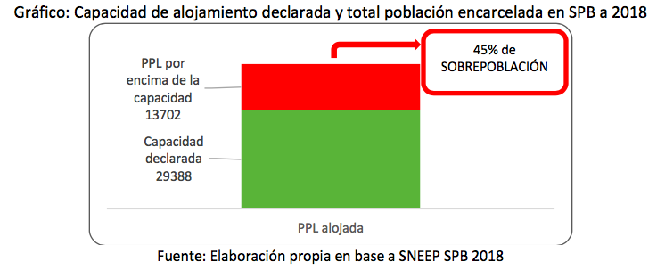 Hace dos años, una resolución del Juzgado en lo Correccional Nº2 de La Plata constató que el promedio anual de aumento de la población encarcelada bonaerense era de 4.000 personas. “Se consignaba que la capacidad de alojamiento en penitenciarías era de 28.810 personas, pero que la población alojada a junio de 2018 ascendía a 42.064 personas; mientras que, en comisarías, con una capacidad de 1.021 personas, había 3.539 alojadas”. En sus oportunidades, la Corte provincial y el Comité Nacional para la Prevención de la Tortura también informaron lapidariamente sobre la situación. “En diciembre se creó una mesa de diálogo con intervención de diferentes actores sociales, representantes del Ejecutivo, del Legislativo, jueces y organizaciones civiles destinada a buscar alternativas al estado en que se encontraban las comisarías y unidades penitenciarias y, finalmente, el último día hábil del año, la Corte Provincial, en un hecho probablemente inédito en su historia, citó personalmente a todos los jueces penales de la provincia para hacerles saber de la necesidad del uso racional del encarcelamiento frente al panorama de hacinamiento ya sobrediagnosticado” narra el informe. En su último reporte, el Sistema Nacional de Estadísticas sobre Ejecución de la Pena expresó que había 13.702 personas privadas de la libertad por encima de la capacidad y que esto significaba que el porcentaje de sobrepoblación era 45%.