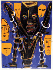 Junto con su pareja de entonces, Jo Gelbard, Miles empuñó también los pinceles. Ella le agradeció esa colaboración, que le dio confianza en sí misma. Pero también vale la inversa, porque él se entregó de lleno a su nueva actividad, en la que produjo obras muy atractivas, que aquí podés ver.