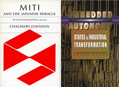 En el caso de Japón, esta dimensión institucional se enfoca en el Ministerio de Comercio Internacional e Industria (MITI por sus siglas en inglés) como “una entidad cohesiva y excepcionalmente idónea”. Evans se basa en un estudio clásico sobre Japón de Chalmers Johnson donde se explica que el MITI convocó “la mayor concentración de talentos de Japón” [3]. Y muestra organismos semejantes en Corea del Sur y Taiwán. Los bancos para el desarrollo y la valoración cultural de la educación, la ciencia y la tecnología completan la caracterización. Con clarividencia notable, en 1982, sostiene Johnson: “Desde la muerte de Mao Tse-tung aún China ha llegado a reconocer, incluso a emular, los logros del Estado desarrollista capitalista”.