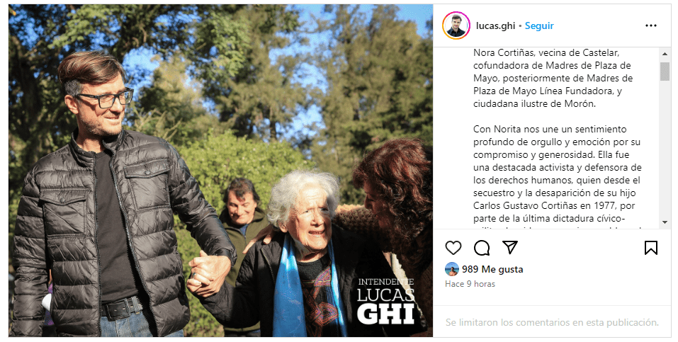 En su distrito, Morón, el intendente Lucas Ghi informó que sería velada en el ex centro de detención Mansión Seré: “Con un profundo dolor despedimos a Nora Cortiñas, vecina de Castelar” .