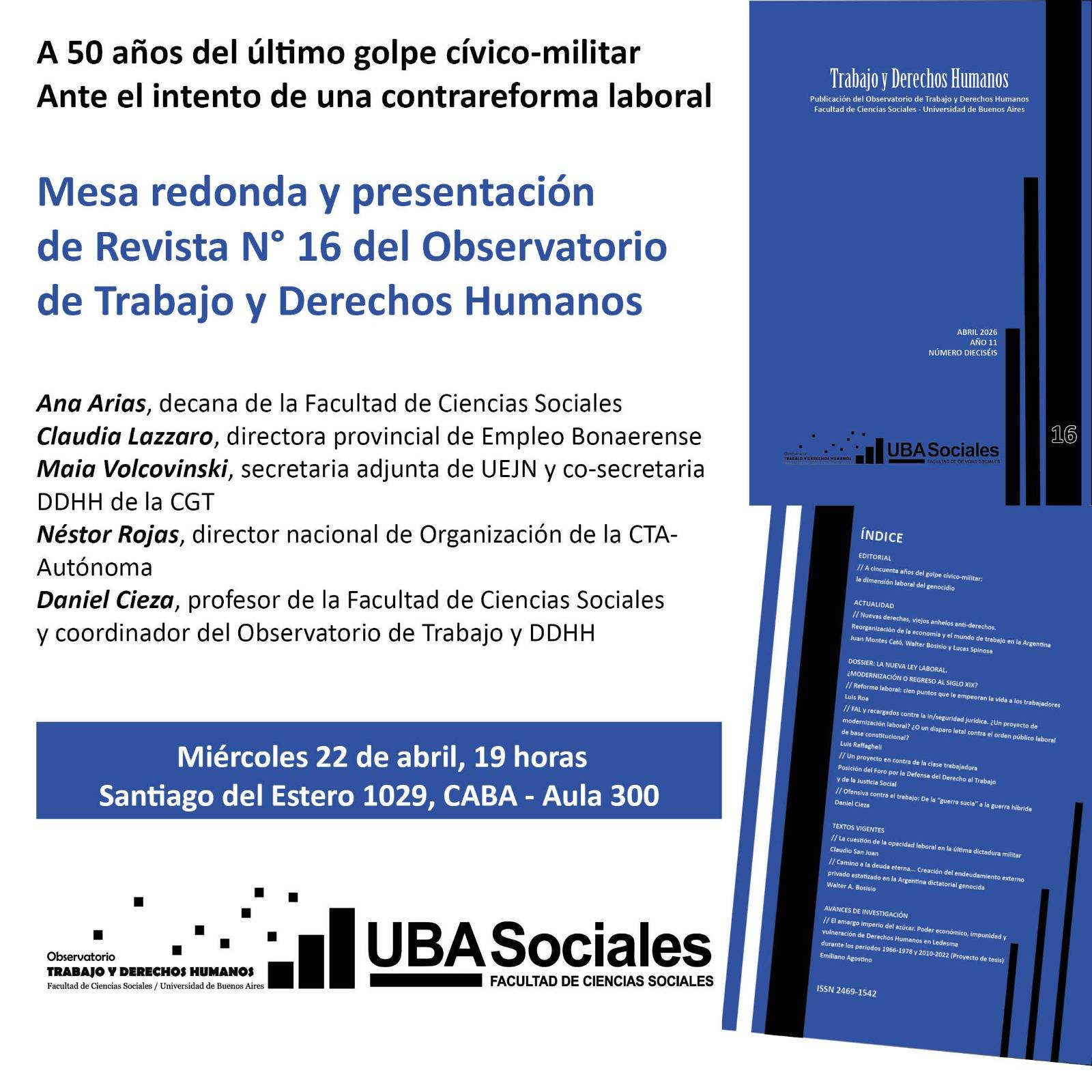 La cuestión fue comentada esta semana, previa a otro día de los trabajadores, en la Facultad de Ciencias Sociales de la UBA, donde presentaron la más reciente revista-libro del Observatorio de Trabajo y Derechos Humanos.