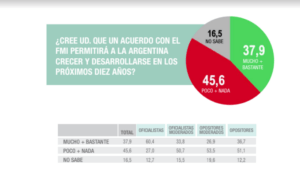 Ni Fernández ni Guzmán revelaron cuándo se devolverían los nuevos préstamos, por el mismo monto que comprometió Macrì, pero a partir de este año ratificados por Alberto. Una encuesta nacional de Analogías (que no forma parte del dispositivo neoliberal) realizada entre el 23 y el 24 de enero entre 2661 personas en todo el país sostiene que para la mayoría un acuerdo con el Fondo no permitirá a la Argentina crecer y desarrollarse en los próximos diez años. Casi el mismo porcentaje opinó que el actual gobierno incrementó la deuda externa más que el anterior. Que esta falsedad goce de semejante consenso es un grave fracaso de la política oficial.