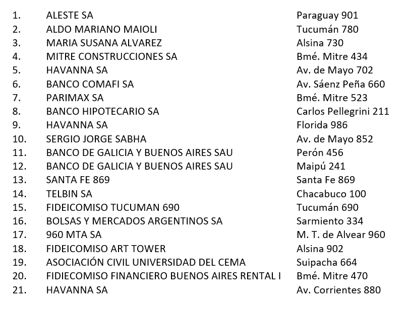 Apenas llegó Jorge Macri al gobierno, realizó un análisis interno de la situación dejada por el gobierno anterior de Larreta con respecto a este “Plan”. Encontró que se habían aprobado 21 proyectos a los siguientes propietarios y en las siguientes direcciones: