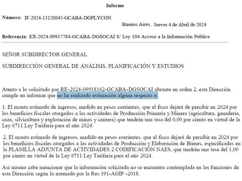 Según datos propios extraídos del Presupuesto 2024 (ya que no obtuvimos respuesta a nuestro pedido de información pública), con esta política de distritos económicos, este año el GCBA va a dejar de percibir 54.366 millones de pesos por recursos fiscales que se resignan en solo tres de los ocho distritos. Hagan sus propios cálculos.
