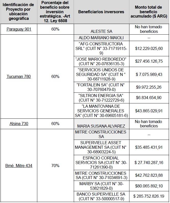 Algunas empresas y bancos tienen varios proyectos aprobados, como Havanna S.A., con tres, o el Banco Galicia, con dos.