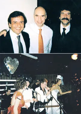 Estas imágenes de archivo pertenecen a las “Charlas de Quincho” de 2009 de Ámbito Financiero. Muestran el casamiento de Martino en el hotel Alan Faena con quienes años más tarde lo protegerían. Arriba, Mario Quintana, entonces CEO de Pegasus, Musimundo y Farmacity; Horacio Rodríguez Larreta y Carlos Melconian. Abajo, Pipo Cipolatti de Los Twist, flanqueado por los novios, Gabriel Martino (HSBC) y la abogada penalista María Florencia Perotti.