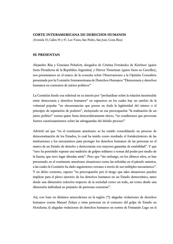 El día 21 de febrero de 2018, Héctor Timerman y Cristina Fernández de Kirchner efectuaron una presentación ante la Comisión Interamericana de Derechos Humanos, a los fines de que la Corte Interamericana de Derechos Humanos pueda conocer y resolver acerca de la afectación de garantías judiciales de ambos.