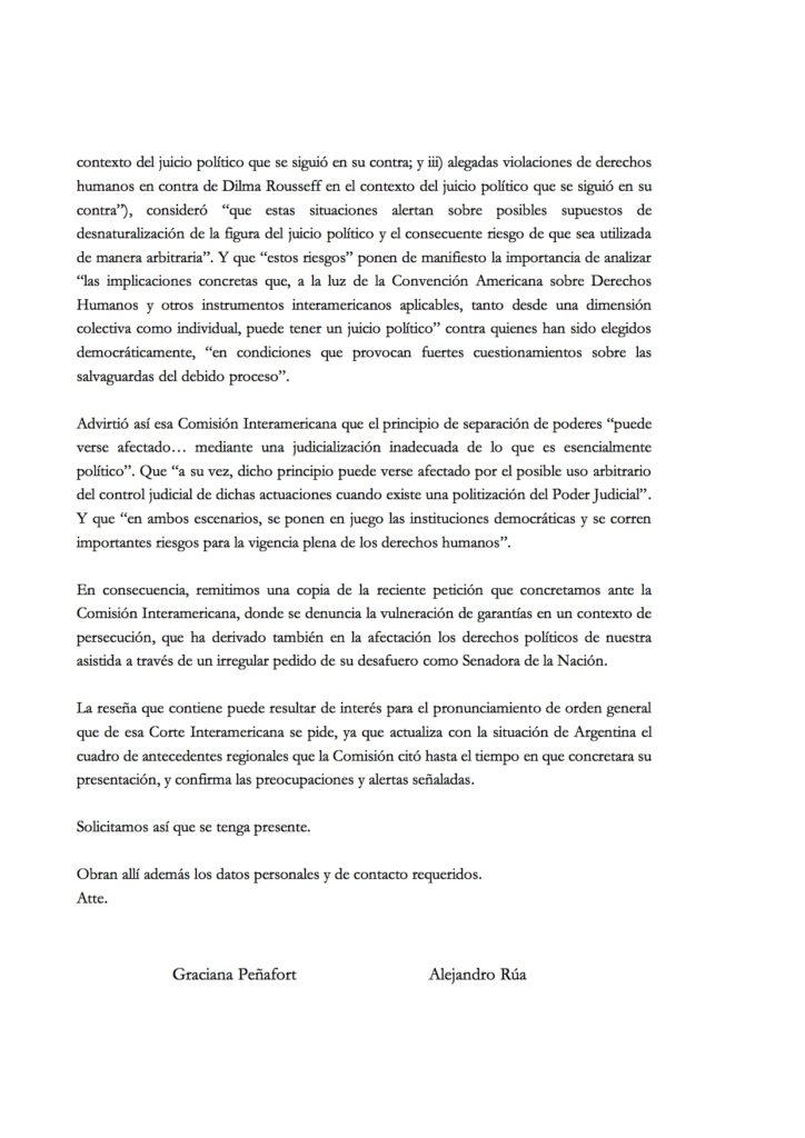 La Corte Suprema de Justicia de la Nación con fecha 22 de agosto de 2017 rechazó el reclamo de la defensa y no admitió el recurso y en base a este rechazo, ya firme en el plano nacional, es que denunciamos las violaciones ante la Comisión Interamericana de Derechos Humanos