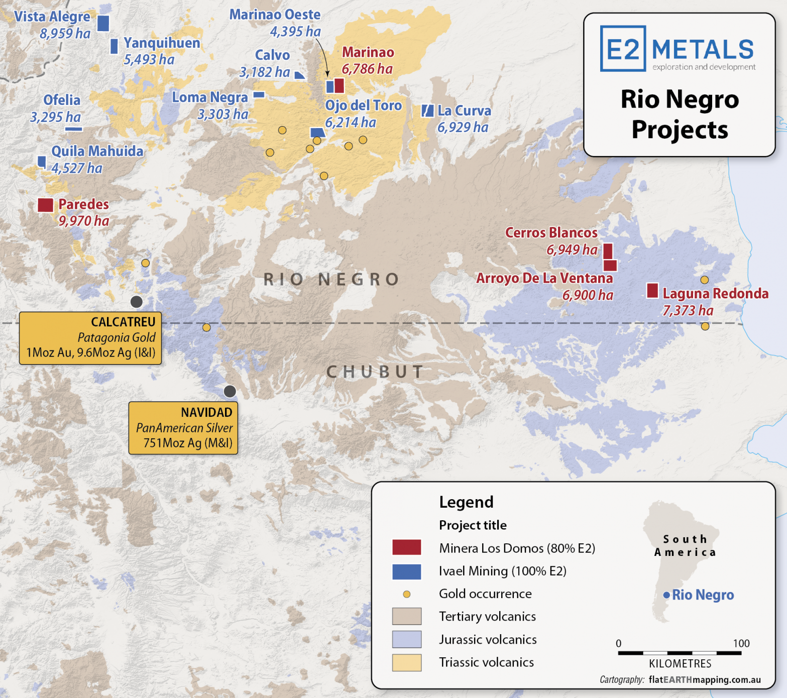 El abogado Hugo Emilio Bastías y Los Domos Pty Ltd, subsidiaria de E2 Metals, inscribieron Ivael Mining en San Juan en 2019. El año anterior se inscribió Los Domos en Australia. Los mismos capitales tienen doce áreas por 91.000 hectáreas en Santa Cruz.