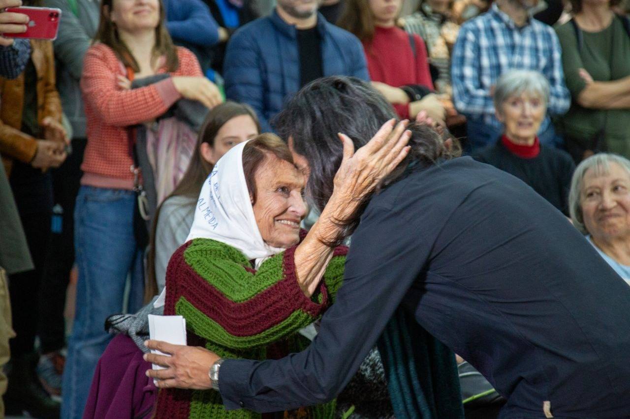 “Un abrazo infinito”, que estará hasta el 16 de octubre en el Centro Cultural de la Memoria Haroldo Conti, con entrada libre y gratuita, surgió del libro fotográfico de Leo Vaca Madres y abuelas por iniciativa de la Secretaría de Derechos Humanos de la Nación. “¿Pueden los objetos capturar algo de lo que puede un cuerpo?”, se pregunta Marta Dillon en un texto de la muestra. La letra casi infantil de un poema; las fotos familiares, escasas a partir de la adolescencia; lo que se había hecho para esos hijos y esas hijas antes de que también salieran a la vida política; esos objetos no pueden lo que puede un cuerpo, pero ahí estuvieron, escribe Dillon, manteniendo el espacio vacío lleno de ternura y de rabia.