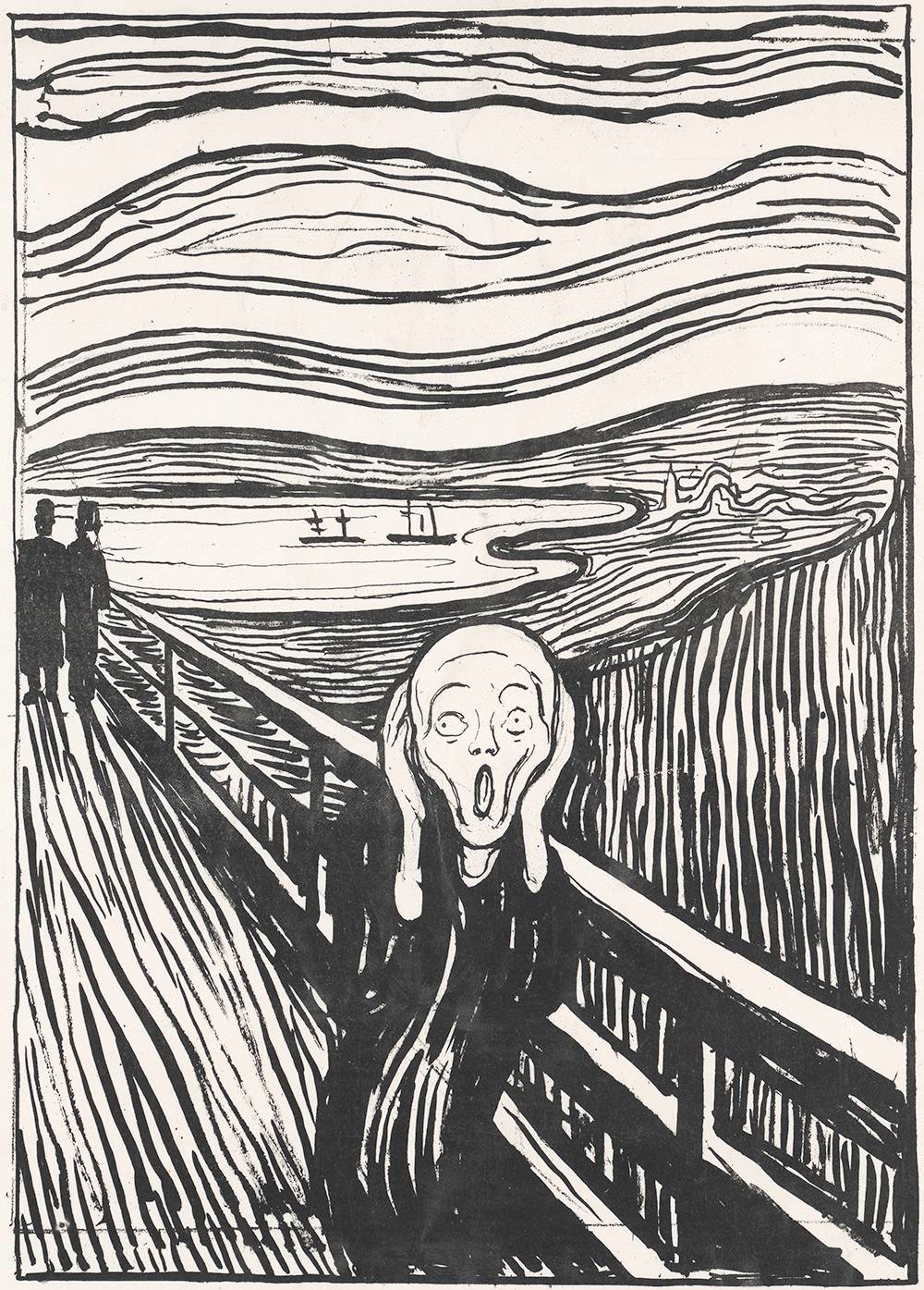 El grito es el nombre de cuatro cuadros del noruego Edvard Munch de 1893, que tuvo muchas interpretaciones. Ya volveremos sobre él.