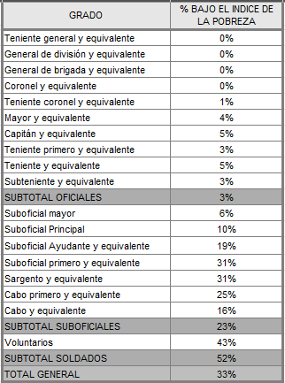 Efectivos militares bajo la línea de pobreza (promedio)