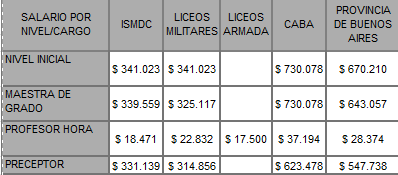 Diferencia salarial entre docentes de las FF.AA. con CABA y provincia de Buenos Aires