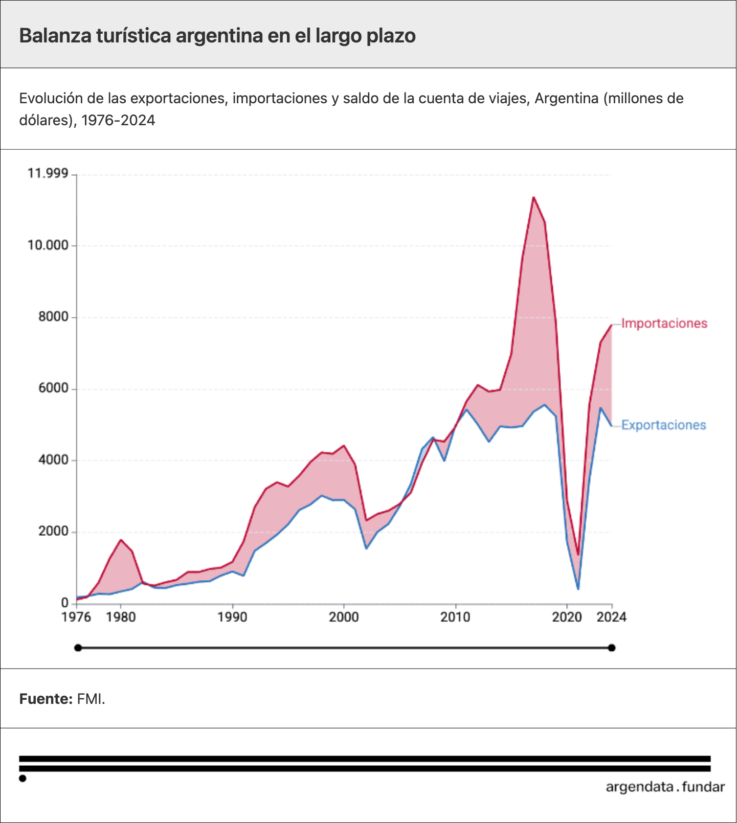 El turismo puede ser una fuente importante de generación de divisas para los países. Sin embargo, la balanza comercial turística de la Argentina ha sido persistentemente deficitaria: el país tuvo saldo negativo en 42 de los 49 años transcurridos desde 1976.