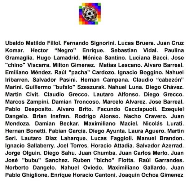 También los jugadores nacionales se expresaron en una solicitada. 70 integrantes de Futbolistas Unidxs levantaron la cifra simbólica de los 30.000 para recordar que, entre ellos, “contamos a 220 deportistas”, al tiempo que reniegan de la privatización de las entidades porque valoran que “un pibe más en un club es un pibe menos en la calle”. En el párrafo que mejor combina la iconografía del fútbol con la política, claman “por los pibes de Malvinas que no vamos a olvidar, por el Diego y no por la asesina de guerra Margaret Thatcher”, a acompañar la fórmula oficialista. La nómina de firmantes la encabeza Ubaldo Matildo Fillol, arquero de la selección que posibilitó que la Argentina se alzara con su primera copa en un Mundial durante aquella dictadura (los más jóvenes ya saben que Diego Maradona consiguió la segunda y que los pibes de Malvinas estuvieron en el recuerdo del coro más cantado que acompañó la tercera). Junto al “Pato” firmaron los campeones Héctor “Negro” Enrique, Jorge Olguín y el preparador físico de Maradona, Fernando Signorini.
