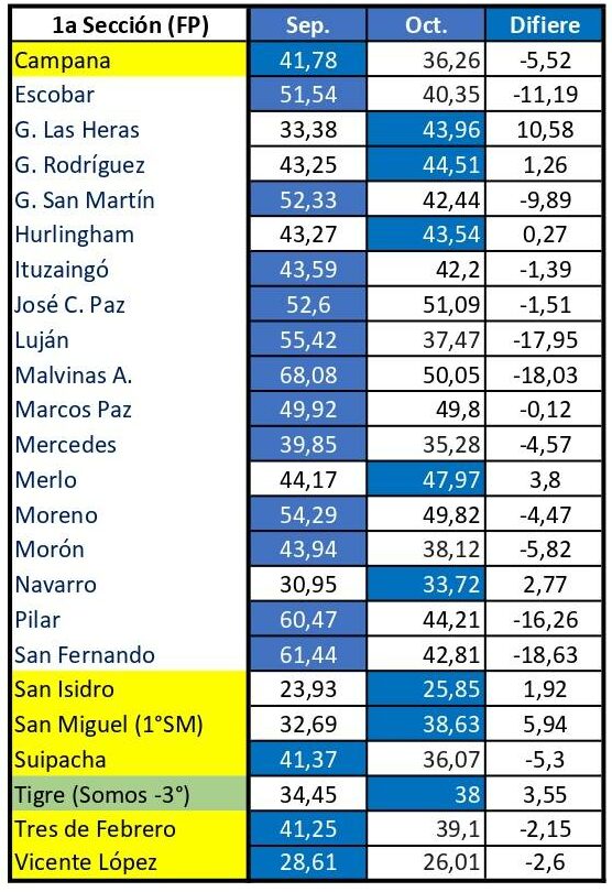 La mayor migración porcentual se dio en San Fernando, Malvinas Argentinas, Luján y Del Pilar, entre los 16 y 19 puntos. Mientras los que mejor retuvieron fueron Marcos Paz y Hurlingham, por unas centésimas.