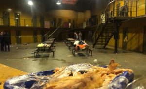 - A la noche, los penitenciarios les dan unos colchones y unas mantas. Los colchones no son ignífugos. La historia penitenciaria argentina tiene una larga tradición de masacres y tragedias que se iniciaron con fuego. Durante el día, les sacan los colchones y se sientan en el piso. Para todas estas personas hay una única ducha con agua caliente.
