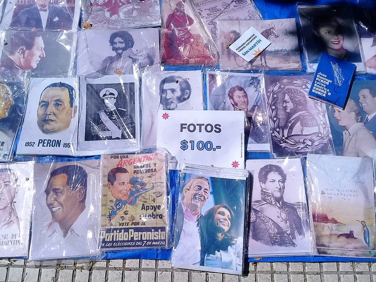 A lo lejos andan Máximo Kirchner y Mayra Mendoza. Alberto mandó a levantar las sillas que estaban alrededor del palco porque quería encontrarse directamente con la gente. Un señor estiró una tela para vender fotos en la calle. La tela sostiene como un altar imágenes de todas las Evas y CFK. Un pibe sobre Diagonal Sur camina con una camisa que dice “Orgullo de ser Camionero”. Pasan banderas de Forja, de la CTA y la Juventud Sindical. Dos pibes toman algo en una mesa que alguien puso en la esquina del INDEC. Agustín Rossi se abre paso atorado en el Cabildo, entre selfies y barbijos. Un globo vuela con el nombre de Massa. Un take away colocó en el techo del local guirnaldas mexicanas, que también exorcizan a la muerte.