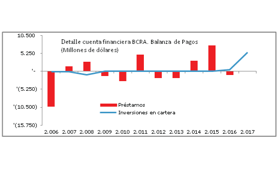Pero volvamos a Caputo. De los 9.000 mil millones de dólares que ingresaron en enero, solo quedan rastros en las estadísticas del BCRA. El Tesoro le vendió al regulador monetario los dólares ingresados por el lado del endeudamiento externo y el organismo monetario rifó ese dinero en las intervenciones cambiarias realizadas para frenar la corrida. El siguiente gráfico muestra la caída de los depósitos en dólares del sector público, que reflejan el proceso de ventas de divisas del Tesoro al BCRA en jornadas sucesivas. Esa es la plata de la última toma de deuda. Se esfumó velozmente por el canal, primero del desarme de posiciones de tenedores de LEBACs del exterior y luego en el remanente de la corrida. Al menos, a fines del 2017, la tenencia de inversiones en cartera en mano de fondos del exterior sobre títulos del BCRA era de 5.578 millones de dólares.