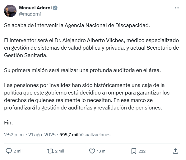 Esta semana, apenas conocidos los audios, gobierno y funcionarios guardaron silencio. Tardaron en definir algo. Por fin, desplazaron al bocón y al director de Acceso a los Servicios de Salud de la ANDis, Daniel María Garbellini. Como siempre, culparon de “las cajas de la política” a gobiernos anteriores, como expresó Manuel Adorni, vocero presidencial:
