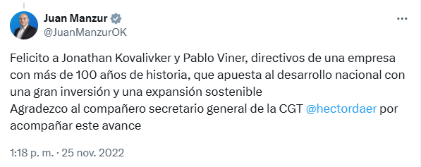 Durante la administración de Alberto Fernández, la Suizo Argentina arregló con el ya gobernador Manzur para construir en Tucumán un depósito con una inversión de $400 millones a cambio de no pagar Ingresos Brutos durante cinco años, lo que generó resistencias –que no pasaron a mayores– en la Legislatura, presidida por Osvaldo Jaldo. En 2022, Manzur felicitó por la planta a Pablo Viner y a Jonathan Kovalivker.