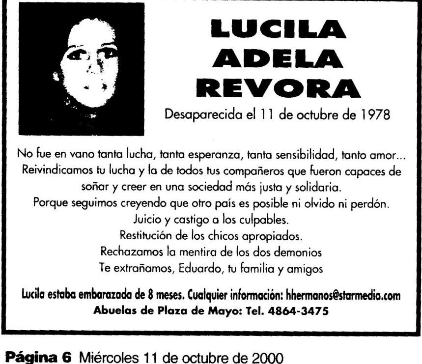 En el acto de hace seis años, la hermana de Lucila, Silvia Révora, resumió el móvil de aquellas luchas: “Una patria justa, solidaria e independiente en lo económico”.